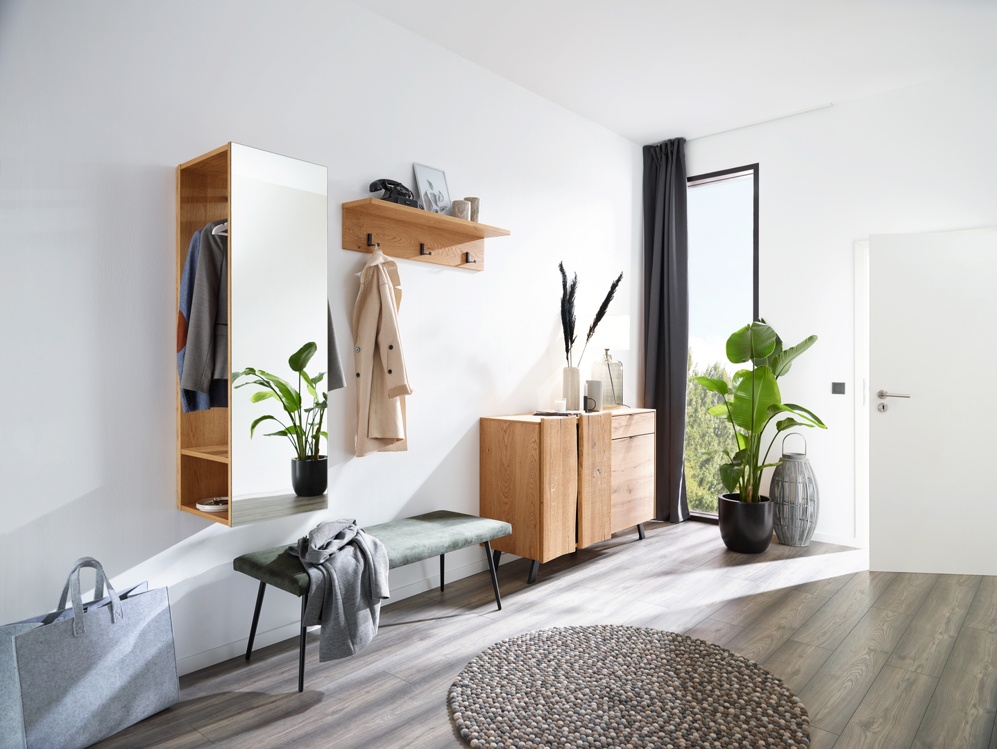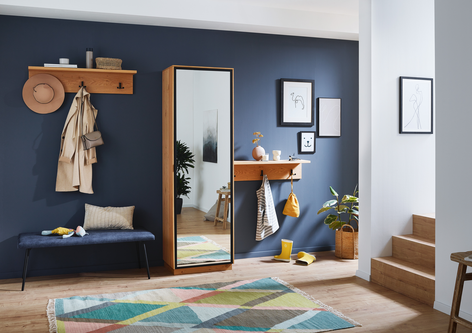 Als Visitenkarten für die eigenen 4 Wände vermittelt der Garderobenbereich den Designeinstieg in Ihre Wohnung. Außerdem bietet er Stauraum für alles, was man beim Kommen und Gehen so braucht. Von den Gummistiefeln bis zur Hutablage. Die Handtaschen, Mäntel, Mützen und viele weitere Accessoires nicht zu vergessen.