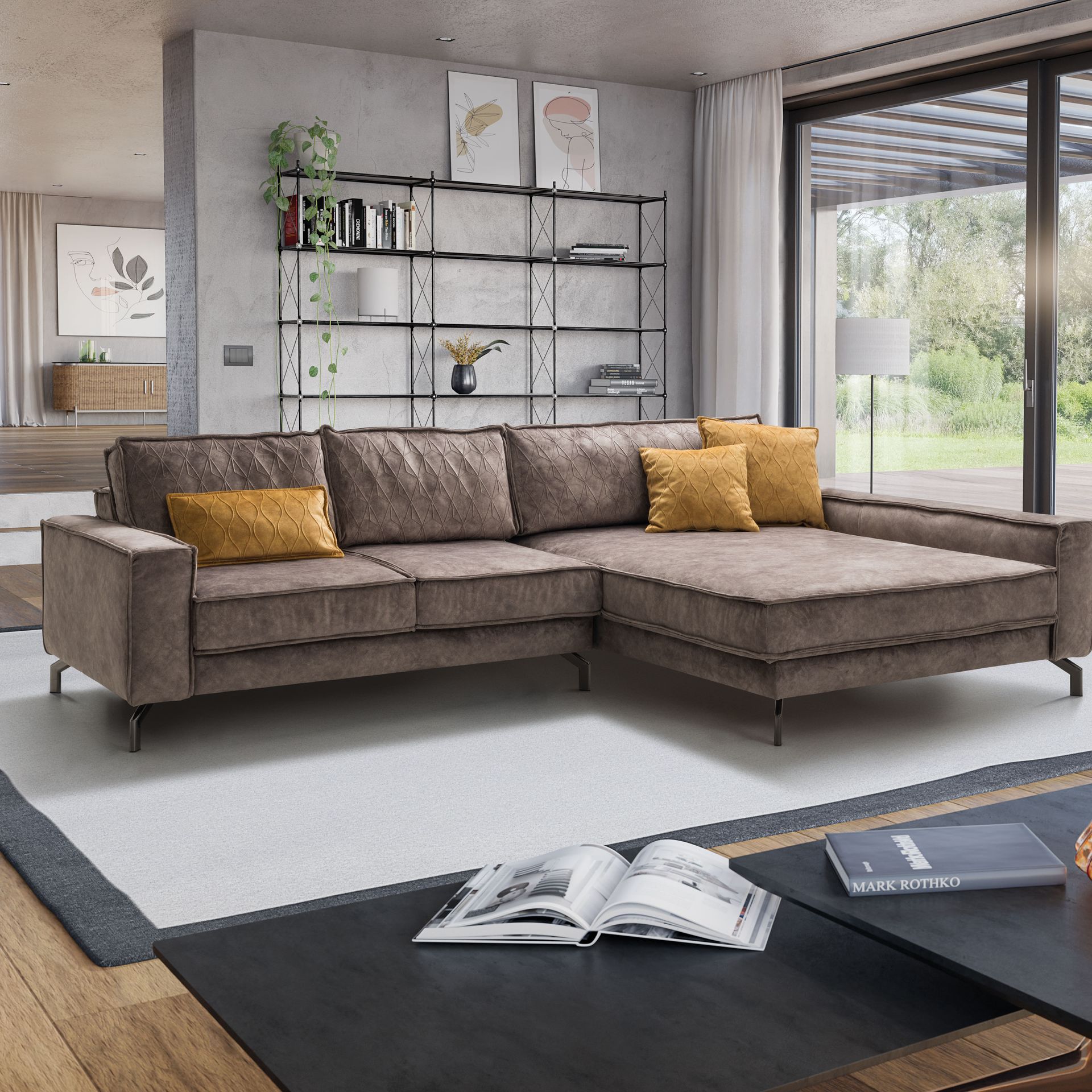 Wohnlandschaften hier, hochbeinige und grazile Sofas als Blickfang da. Auch das Auge wohnt mit. Deshalb schaffen zwischendurch oft schwarze, aber auch glänzend silberne oder farbig lackierte Metallgestelle farbige und designtechnische Kontraste – und wirken dadurch platzsparend und dennoch sehr elegant.